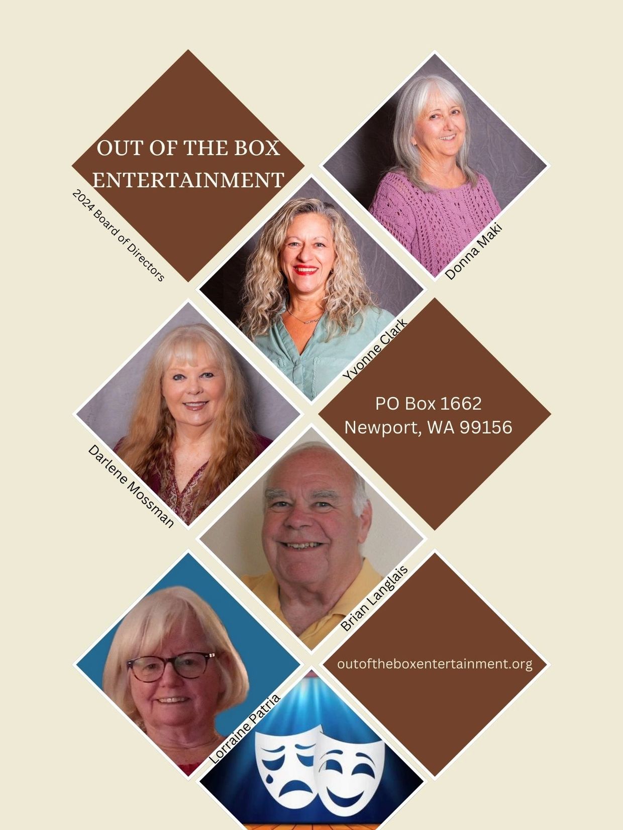 We are a non-profit traveling theatre troupe founded in 2023. Out of the Box Entertainment began as an independent group of actors with decades of experience wanting to expand performance opportunities by performing "Out of the Box" and not being limited to only one location. We perform live action plays, some with live music, at various locations.